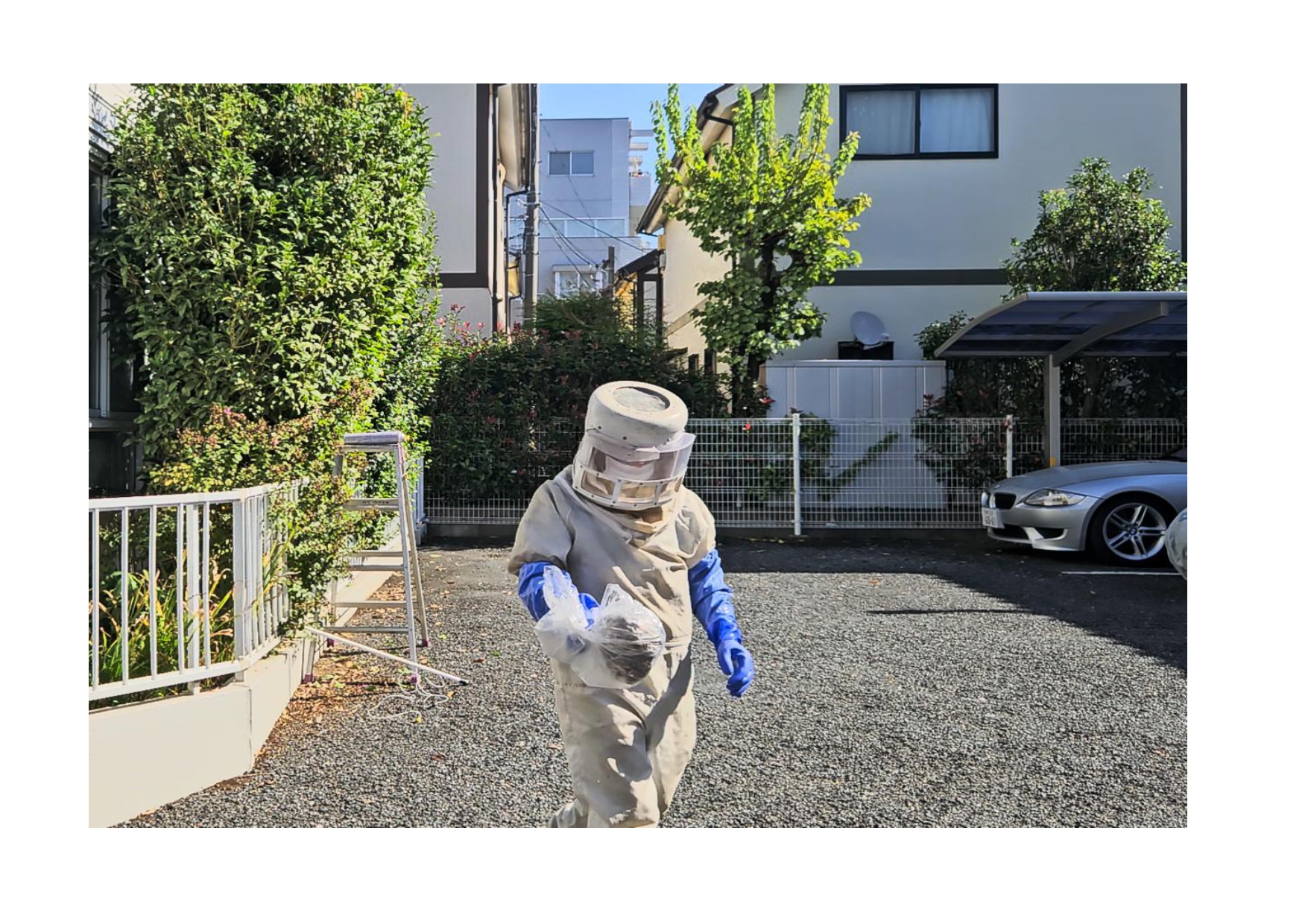 待ち合わせの日時に現地にいくとすでに作業員の方が巣をさがしていました。