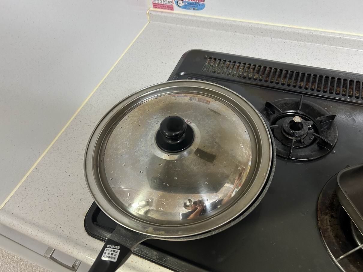 蓋をして3分蒸し焼き――混ぜなおして、もう3分。