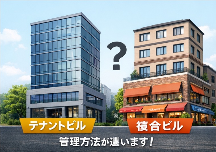 さらにテナントビルなのか、居住用と事業用が混在している複合ビルなのかによっても、考え方や管理の方法は大きく変わってきます(同じ建物でも全然違います)。
